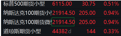 道指期货涨0.28%,标普500指数期货涨0.48%,纳指期货涨0.94%。